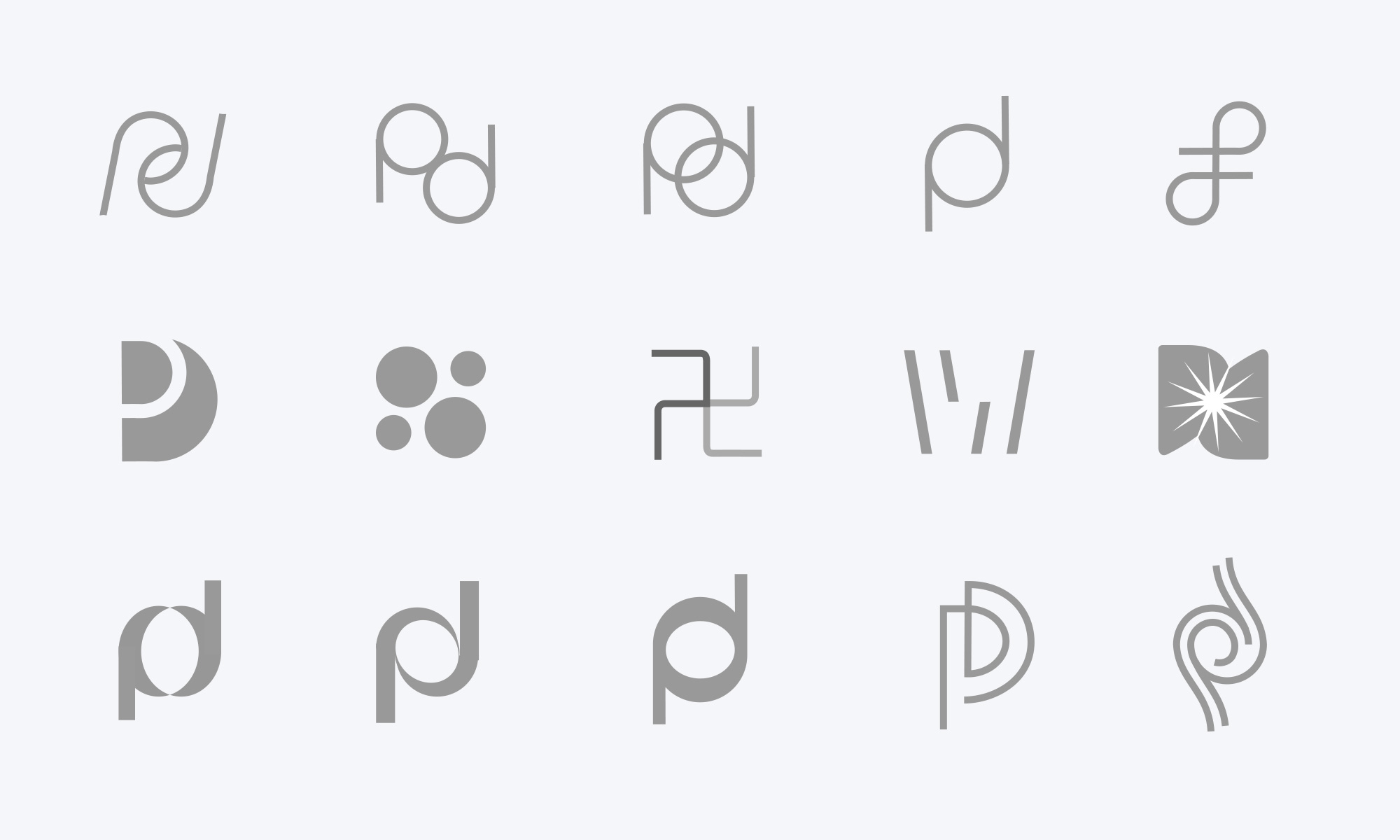 客户要求以“pd”字母作为LOGO造型基础,我们做了二十多个图案尝试,这是其中的一部分方案