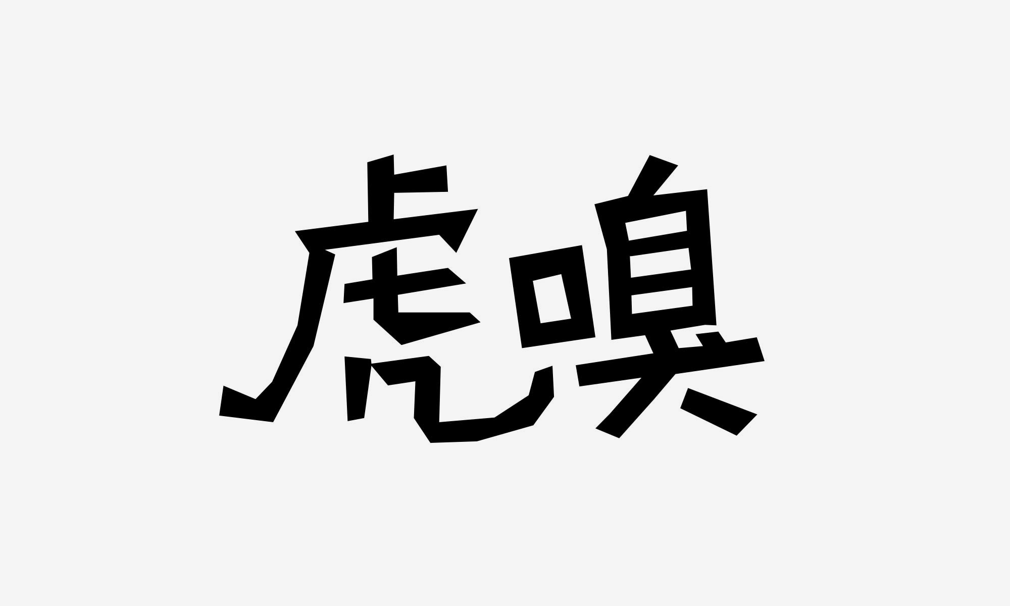 2012年接到虎嗅网的logo设计邀请,当时尝试以虎嗅两个字做为设计点,虎字给人很霸气的感觉,根据网站业务类别出了几版设计稿,其中这个类似手写体我认为很独特,也正是因为这种独特导致提交给他们之后,公司内部争议比较大,最后还是没有采用这个设计。